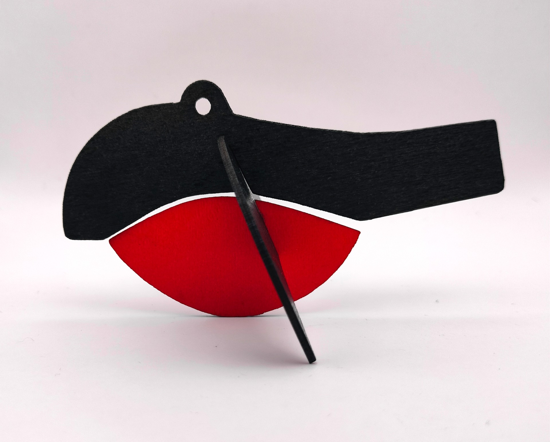 Koottava lintu maalattua koivuvaneria. Koko koottuna 7x7x10 cm. Ripusta langalla tai siimalla.