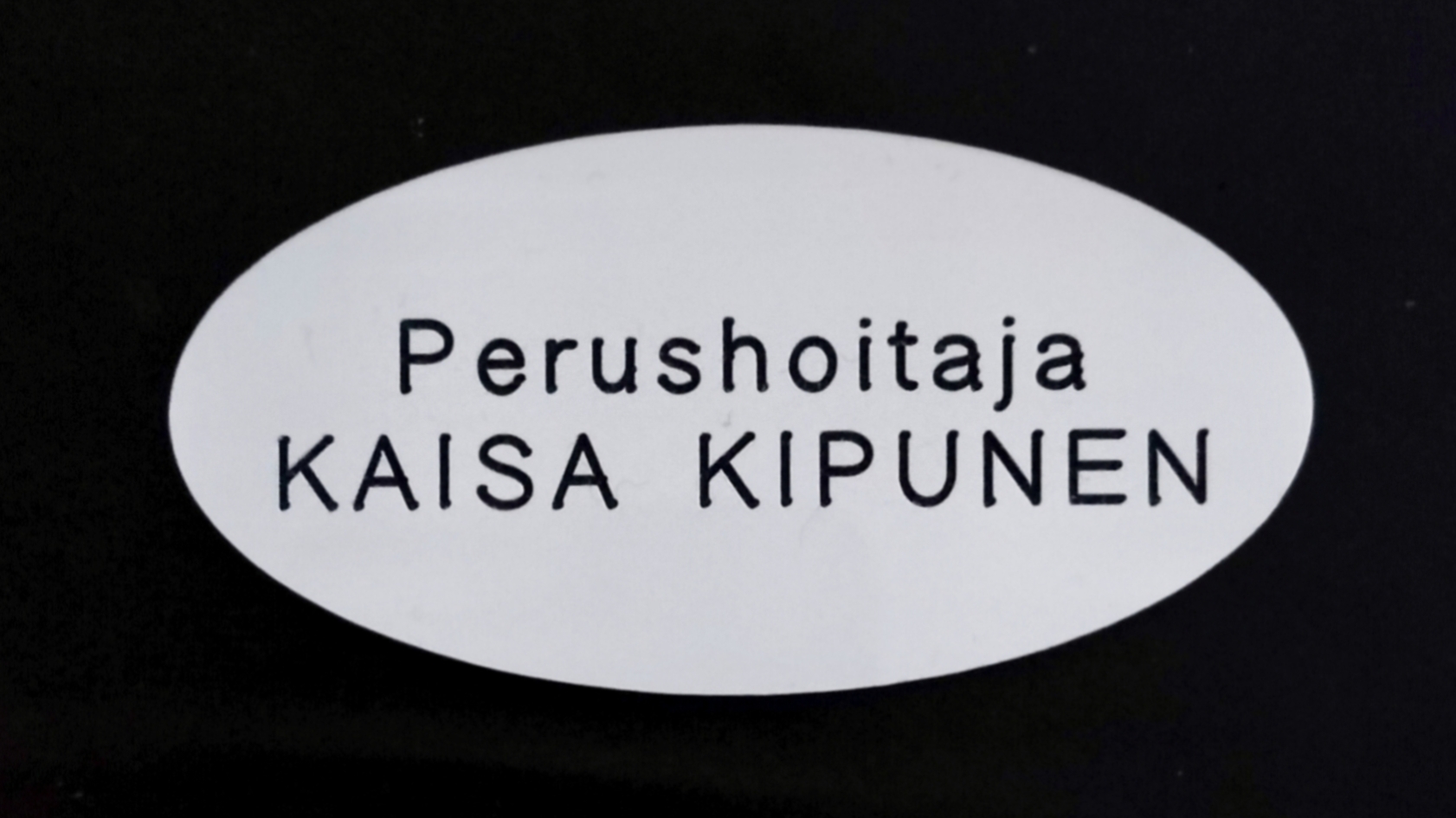 Kaiverrettu nimineula. Koko 35x70 mm. Laatan vahvuus 1.6 mm , taustalla lukkiutuva kiinnitysneula.
