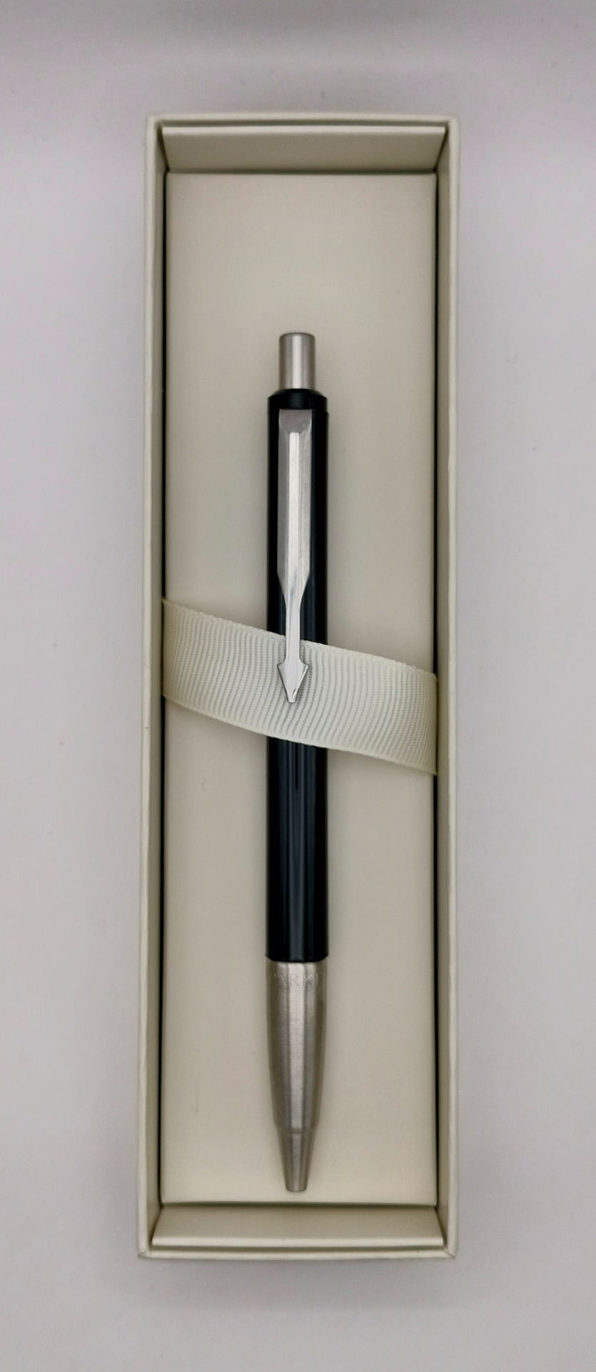 Laatua pikkurahalla. Parkerin kuulakärkikynä mustalla musteella. Varastopoisto.